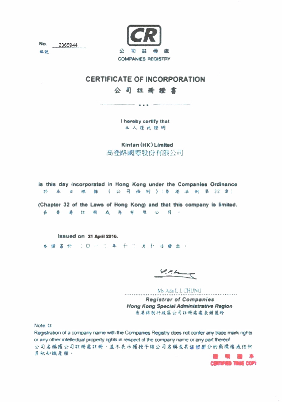 Established a year ago, KINFAN HK Limited operates from her headquarters in Hong Kong, - China's business, administrative and investment zone.